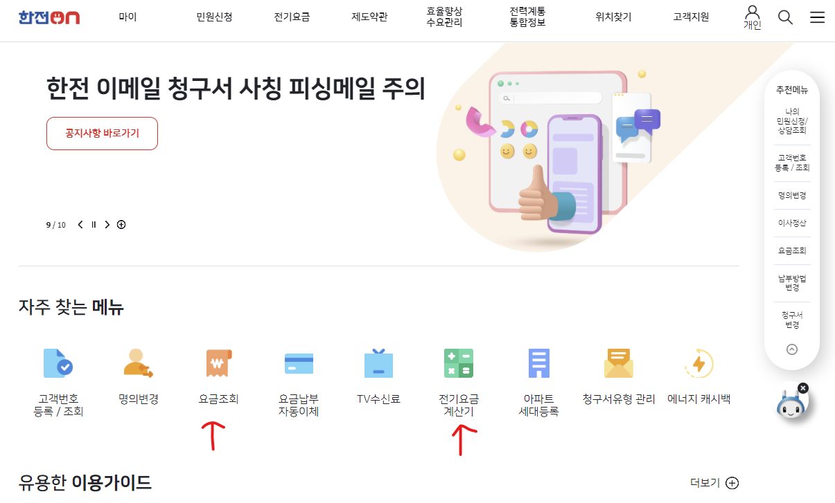 한전온 사이버지점에서 요금조회와 전기요금계산, 누진세 내용을 확인할 수 있습니다.