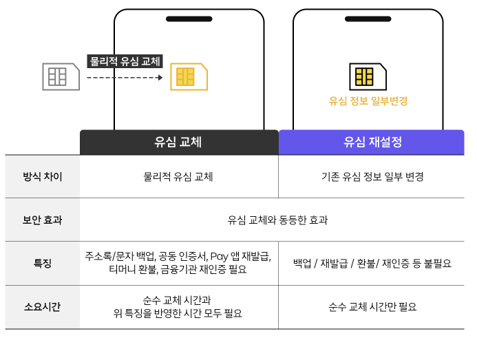 | 방식 | 실물 유심 교체 | 기존 유심 정보 일부 변경 |